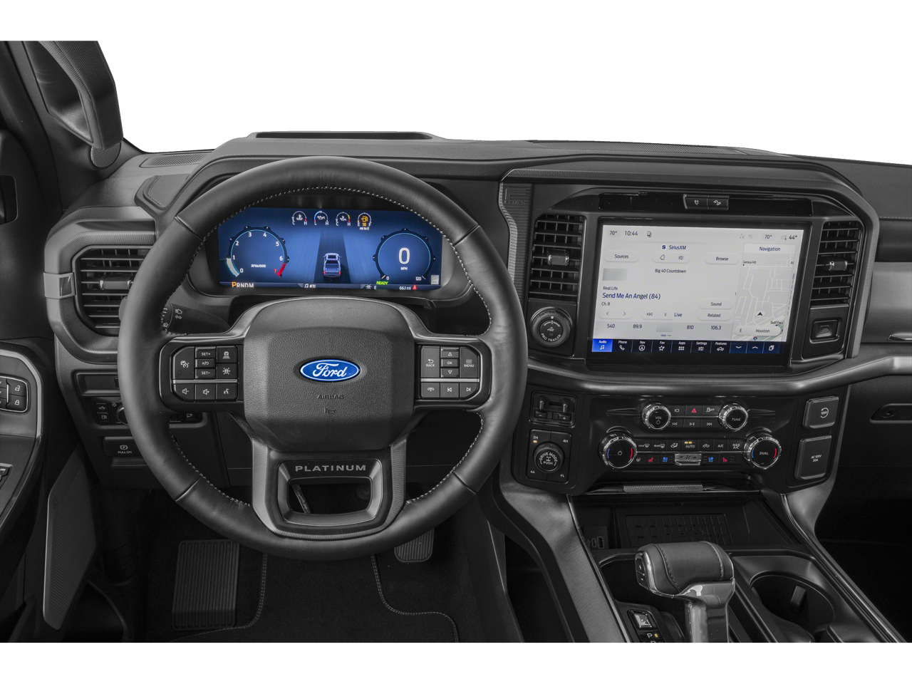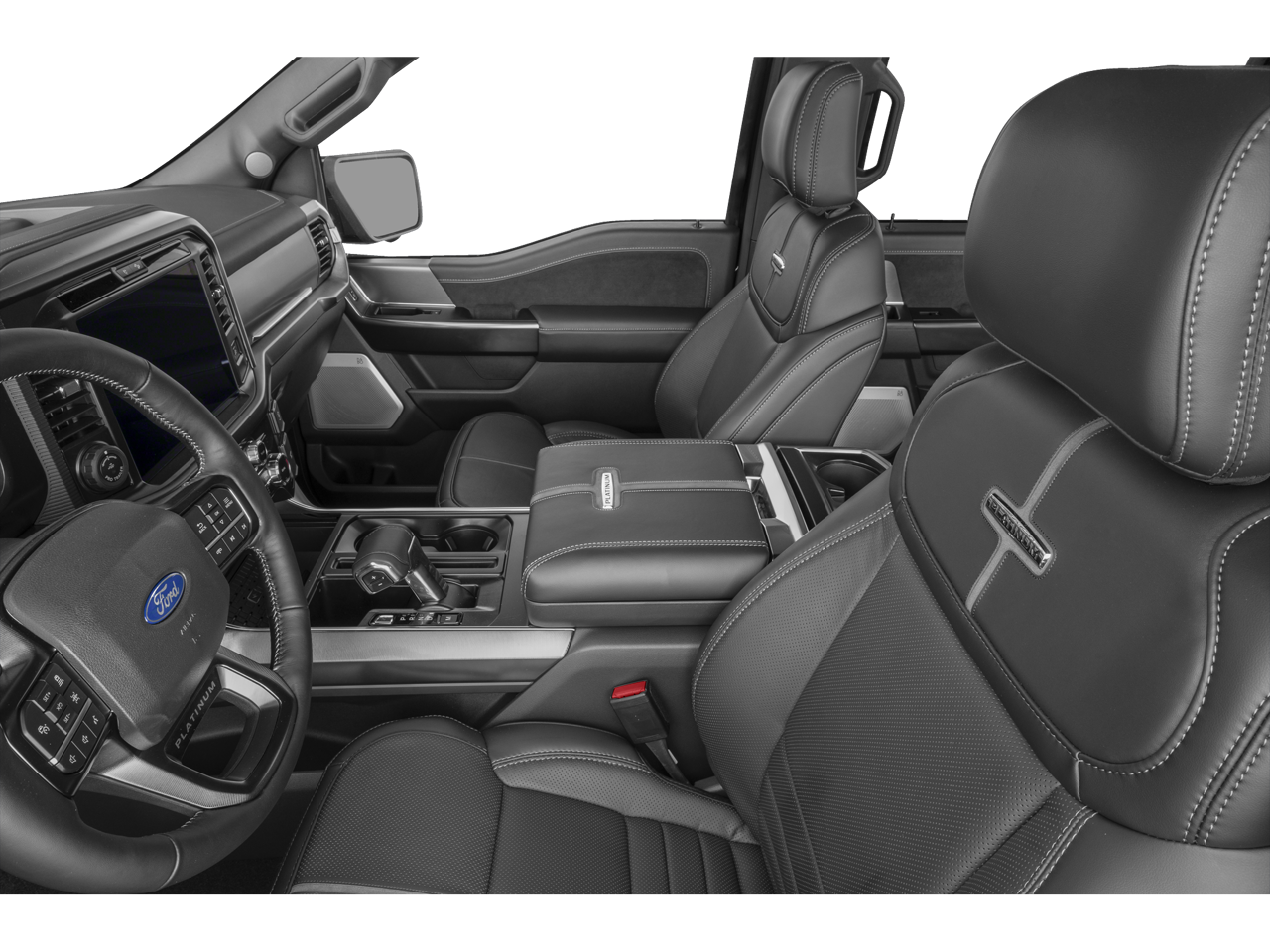 EQUIPMENT GROUP 703A PLUS Satin Single Exhaust, Engine: 3.5L PowerBoost Full-Hybrid V6, Removes 36 gallon fuel tank, Electronic Locking w/3.73 Axle Ratio, GVWR: 7,400 lbs Payload Package, Transmission: Hybrid Electronic 10-Speed Automatic, Center High Mounted Stop Lamp (CHMSL) Camera, Wheels: 22 Premium Painted w/Chrome Inserts, Tires: 22, Platinum Plus Interior Theme, Radio: B&O Unleashed Sound System by Bang & Olufsen, HD Radio and 14 speakers including subwoofer, Tray Style Floor Liner, Wheel Well Liner, Platinum Plus Exterior Theme, Leather-Wrapped Instrument Panel, Illuminated Scuff Plate, Platinum Plus Experience, premium maintenance plan, elite welcome call, welcome package and tribute item, accessories discount (90 day window), Ford rewards upgrade tier and 1:1 texting w/Ford, TWIN PANEL MOONROOF, TOUGH BED SPRAY-IN BEDLINER.