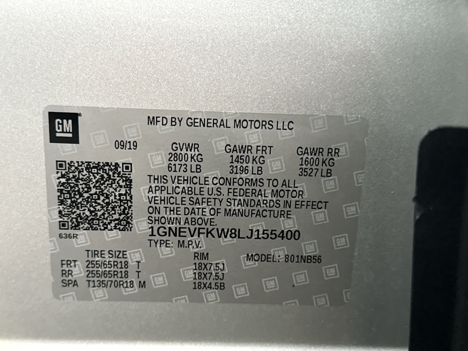 - Tires, P255/65R18 all-season blackwall