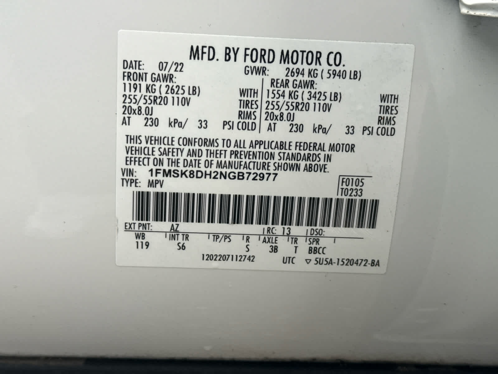 Third Row Seat, Quad Bucket Seats, Power Liftgate, Rear Air, Heated Driver Seat Ford XLT with Star White Metallic Tri-Coat exterior and Ebony interior features a 4 Cylinder Engine with 300 HP at 5500 RPM*.