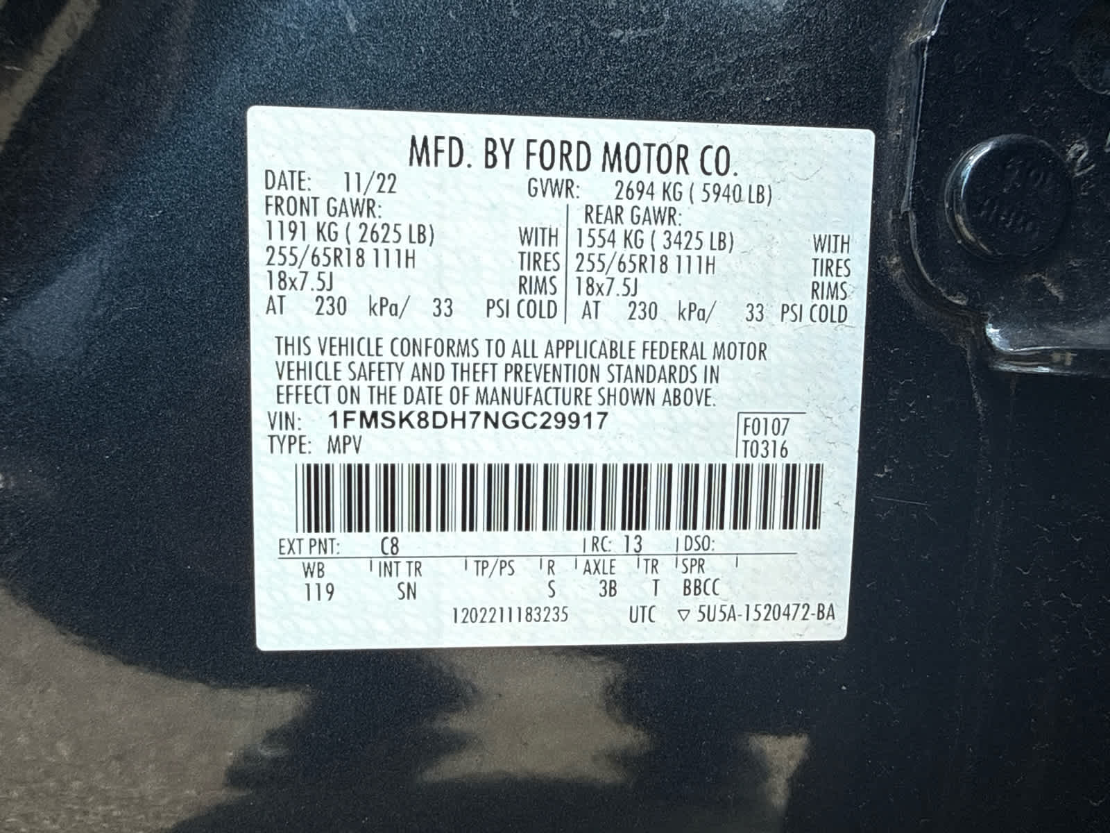 - Tires: P255/65R18 AS BSW -inc: mini spare