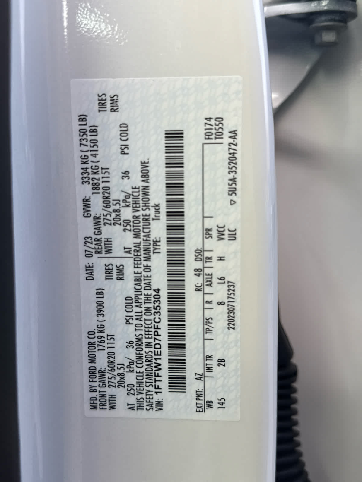 Ford Co-Pilot360 Assist 2.0, rain-sensing wipers, Evasive Steering Assist, Connected Built-In Navigation, Navigation services require SYNC4 and FordPass Connect (optional on select vehicles), complimentary connect service and the FordPass app (see FordPass Terms for details), Eligible vehicles receive a complimentary 90-day trial of navigation services that begins on the new vehicle warranty start date, Customers must unlock the navigation service trial by activating the eligible vehicle w/a FordPass member account, If not subscribed by the end of the complimentary period, the navigation service will terminate, Connected service and features depend on compatible AT&T network availability, Evolving technology/cellular networks/vehicle capability may limit functionality and prevent operation, GVWR: 7,350 lbs Payload Package, Electronic Locking w/3.73 Axle Ratio, TWIN PANEL MOONROOF, Black 6 Angular Step Bars, Black Exterior Badging, Wheels: 20 Gloss Black Painted Aluminum, Tires: 275/60R20 BSW AT, Unique Hood & Grille w/Black Accent, Black Taillamp Bezels, Dark Interior Appliques, Matte Black Tailgate F-150 Decal, STAR WHITE METALLIC TRI-COAT, HD Radio and 18 speakers including subwoofer. Non-Smoker vehicle