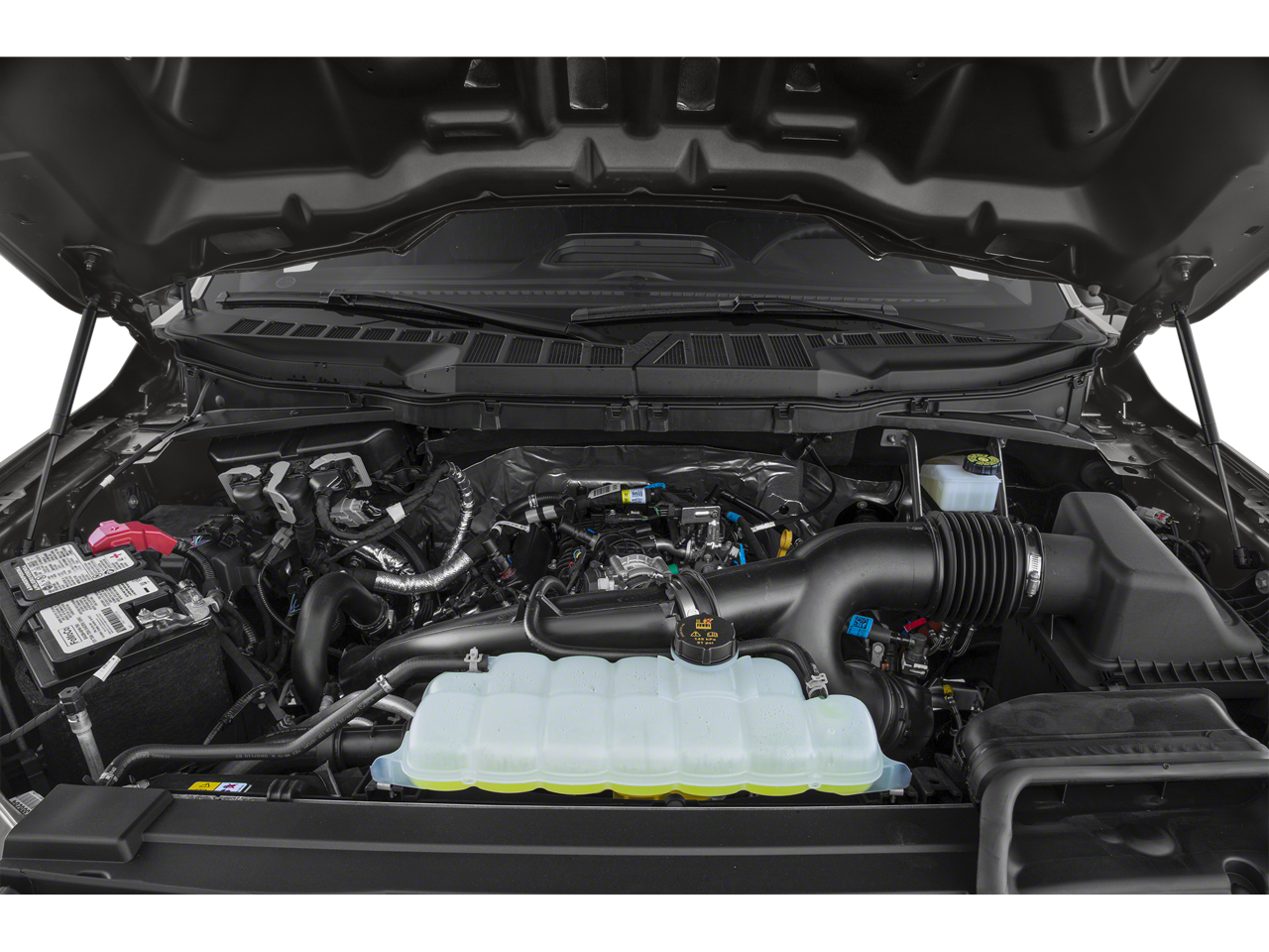 STX APPEARANCE PACKAGE Box Side Decals, Molded-In Color Black Honeycomb Style Grille, body-color surround, Tires: 275/65R18 BSW Automatic Transmission, SYNC 4 w/Enhanced Voice Recognition, 8 LCD capacitive touchscreen w/swipe capability, wireless phone connection, cloud connected, AppLink w/App catalog, 911 Assist, Apple CarPlay® and Android Auto® compatibility, digital owners manual, conversational voice command recognition and connected navigation, Note: Navigation services require SYNC 4 and FordPass Connect (optional on select vehicles), complimentary connect service and the FordPass app (see FordPass Terms for details), Eligible vehicles receive a complimentary 90-day trial of navigation services that begins on the new vehicle warranty start date, Customers must unlock the navigation service trial by, ENGINE: 2.7L V6 ECOBOOST 3.55 Axle Ratio, GVWR: 6,600 lbs Payload Package, WHEELS: 20 6-SPOKE MACHINED-ALUMINUM magnetic painted pockets, Fog Lamps w/Black Bezels, Driver/Passenger Seat Back Pocket, Tires: 275/60R20 BSW AT, Manual Driver/Passenger Lumbar, ELECTRONIC LOCKING W/3.55 AXLE RATIO, CLASS IV TRAILER HITCH RECEIVER towing capability up to TBD lbs, on 3.3L V6 PFDI engine (99B) and 2.7L EcoBoost engine (99P) or up to TBD lbs, on 3.5L EcoBoost engine (998) and 5.0L V8 engine (995), 7/4-pin connector, class IV trailer hitch receiver, smart trailer tow connector ( BLIS w/trailer tow coverage where BLIS is available), TRANSMISSION: ELECTRONIC 10-SPEED AUTOMATIC selectable drive modes: normal, ECO, sport, tow/haul, slippery, deep snow/sand and mud/rut (STD).