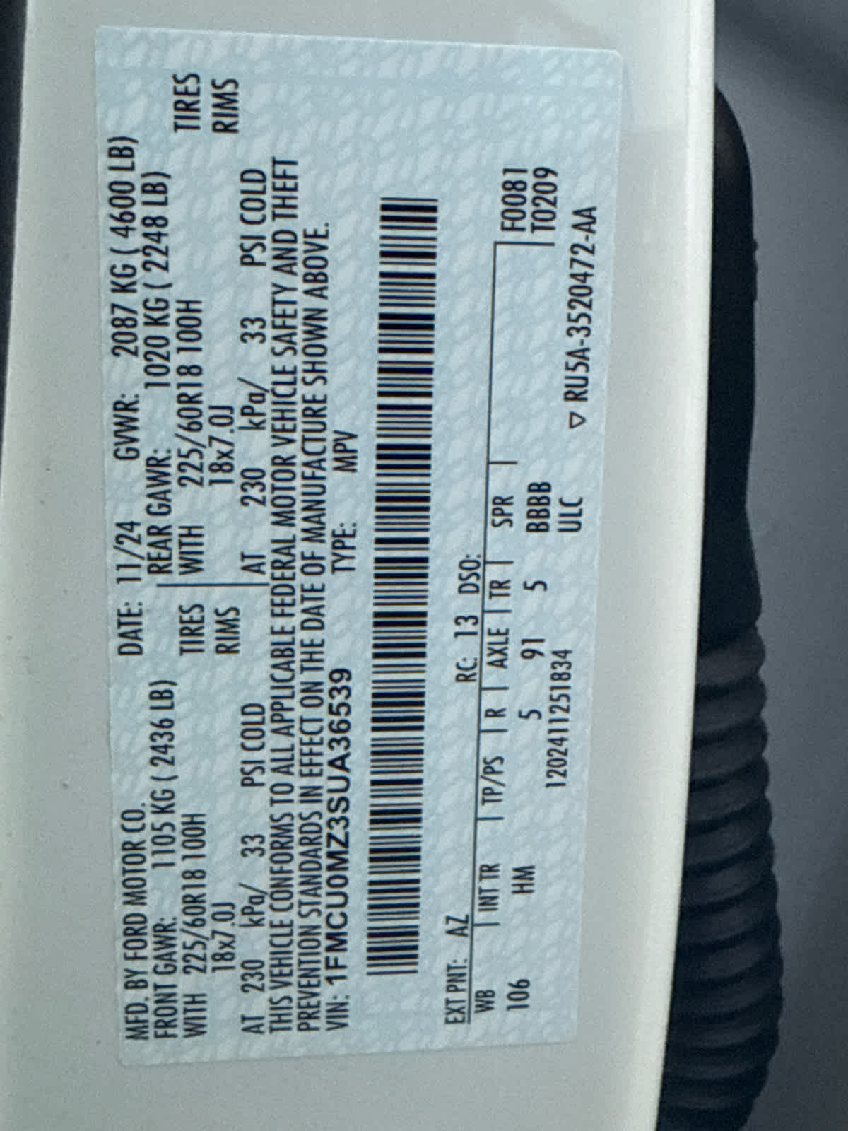 - Vehicle Name: Ford Escape